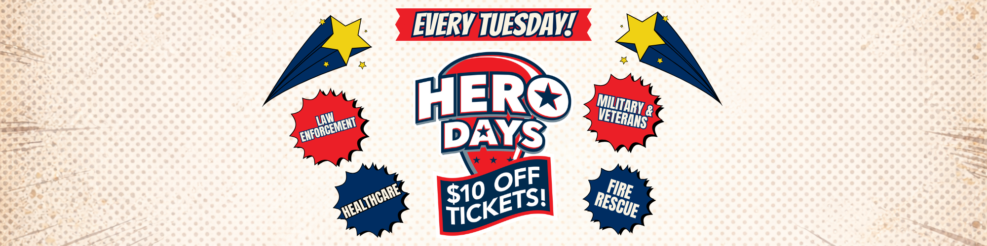 Thank you to all heroes who improve our community! We will be honoring Law Enforcement, Fire Rescue, Veterans, and Healthcare workers for our Hero Days this season.